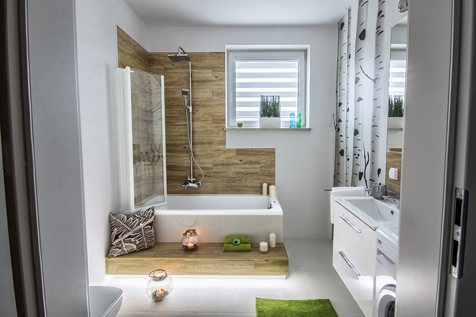 Element ten został powtórzony również w łazience, aby i tam korzystając z kąpieli czuć się komfortowo i wyjątkowo.