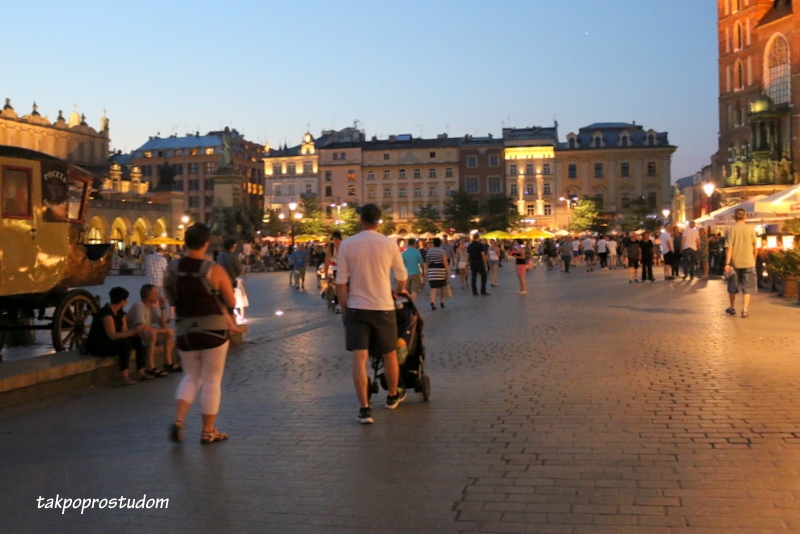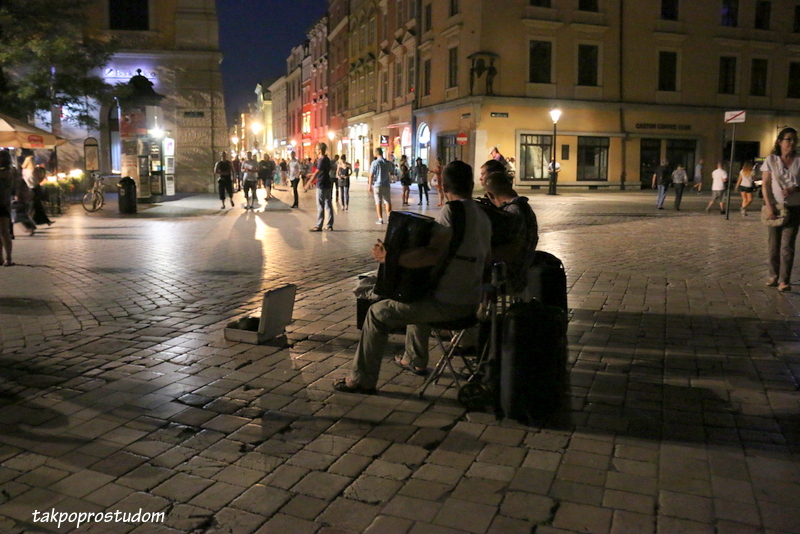 A Kraków wieczorem w świetle lamp, rozświeconych restauracji, rytmów muzyki, niespiesznie spacerujących przechodniów,