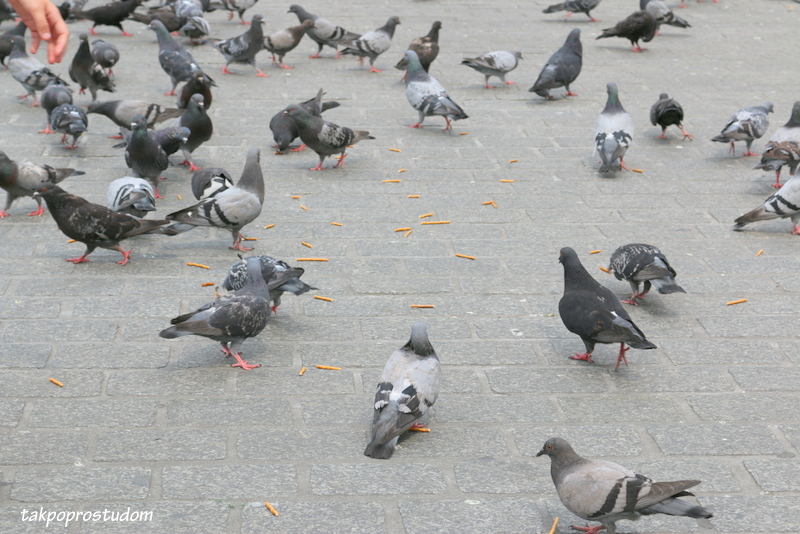 Oczywiście obowiązkowe karmienie gołębi na rynku głównym nie