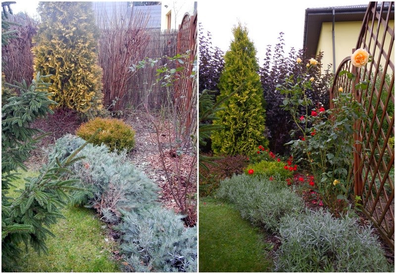 W czasie spaceru zastanawiałam się jak niesamowite jest to jak pory roku zmieniają kolory, jaki mają wpływ na nasze samopoczucie. Poniższe zdjęcia przedstawiają te same miejsca mojego ogrodu z września tego roku i z dnia dzisiejszego. Prawda że niesamowite. Co może zdziałać kolor i słońce?