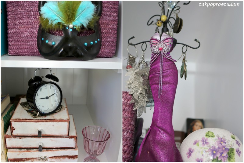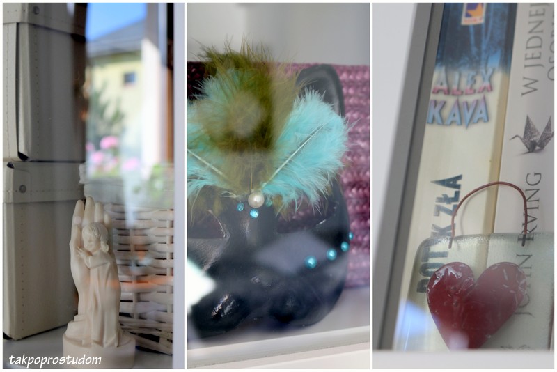 Z poprzedniego pokoju który był z przewagą fioletu i szarości pozostały niektóre rzeczy których Natalce szkoda było się pozbyć i dziś  są ozdobą szklanej witryny…,