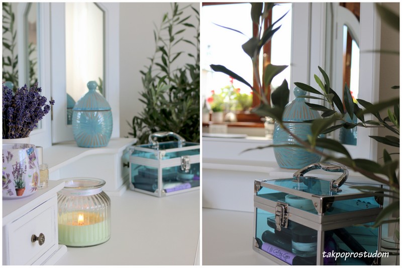 7. Poduchy ( puchata morska i biała pluszowa na łóżku),  świeczniki,  widoczny pojemnik w morskim kolorze  na toaletce,oraz kolorowy kosz  pochodzą  ze sklepu, HOME&YOU