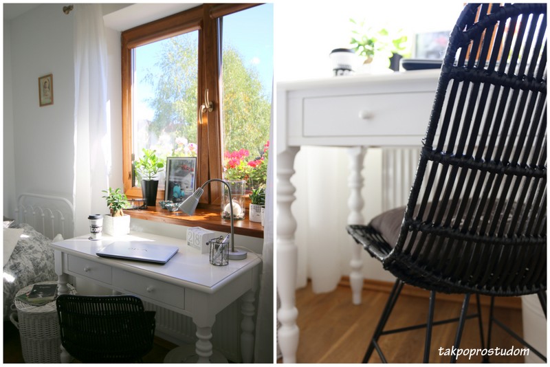 4. Łóżko, biurko, krzesło, biało-czarne doniczki SKLEP LITTLEROOM