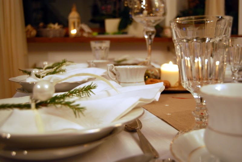 Dziś chciałabym pokazać Wam mój stół Wigilijny. Bardzo lubię moment dekorowania stołu, sama jestem bardzo ciekawa efektu, ponieważ przeważnie nie mam  wcześniej jakiejś konkretnej wizji jak ma wyglądać. Zazwyczaj wyciągam wszystko co mam, plus to co udało mi się dokupić…i tworzę. Raz jestem bardziej zadowolona z efektu, raz mniej. Tegoroczny stół podoba mi się, jest prosty, elegancki, klasyczny. Choć przeważa biel, udało mi się przemycić elementy czerwieni i złota ( przeważających  kolorów w aranżacjach świątecznych występujących w salonie i…na choince).